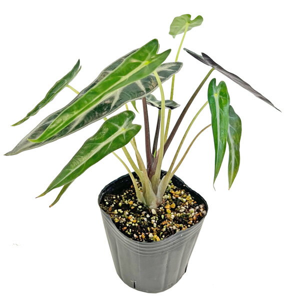 アローカシア・アマゾニカは黒色のてり葉に白い葉脈が入る